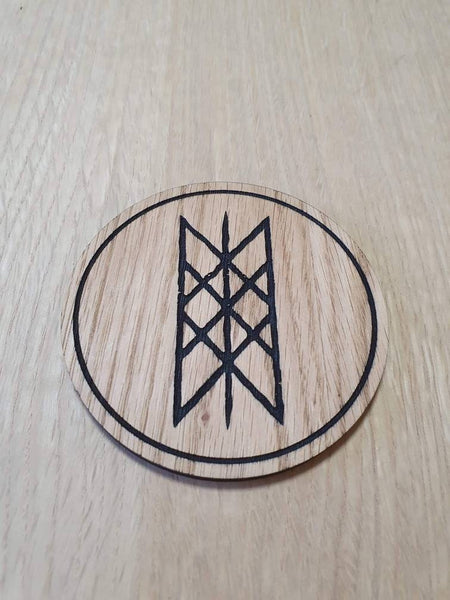 Laser Cut Oak Coaster: Web of Wyrd Nordic Viking Design