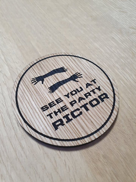 Laser cut wooden coaster. Total Recall Richtor Party Quote - Unique Gift lasercut