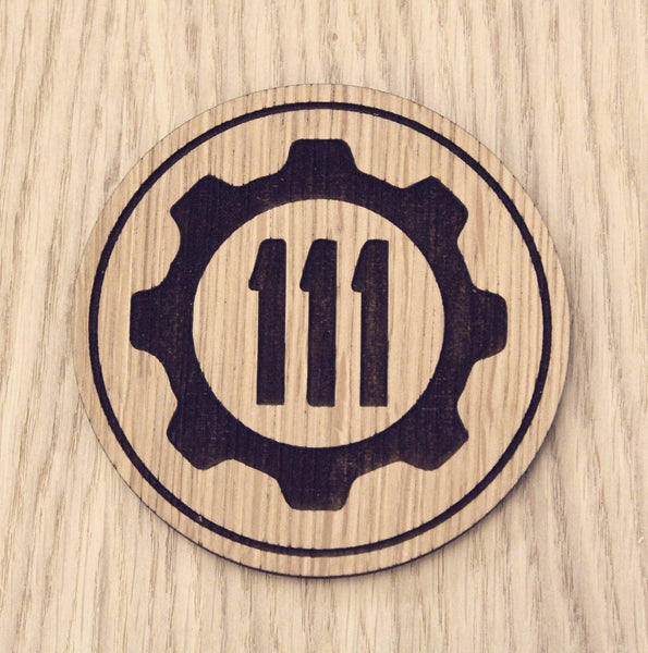Laser Cut Oak Veneer Coaster: Vault 111 Design