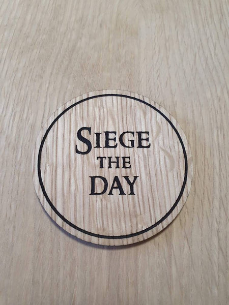 Laser Cut Oak Veneer Coaster: Siege the Day Design