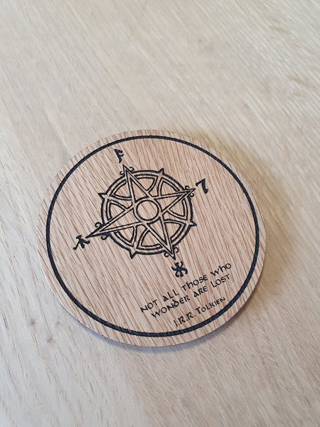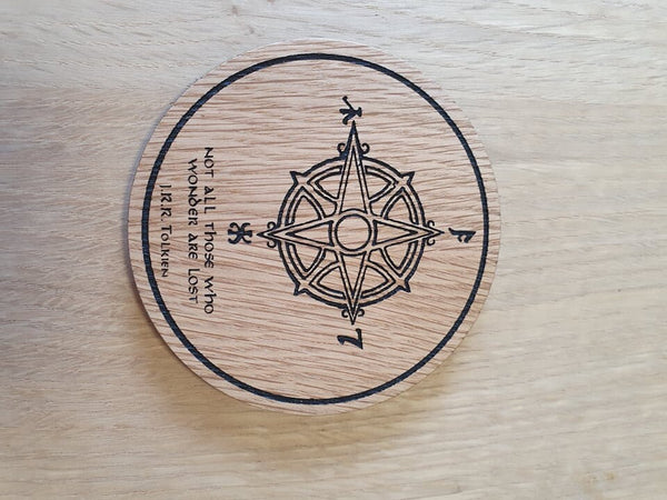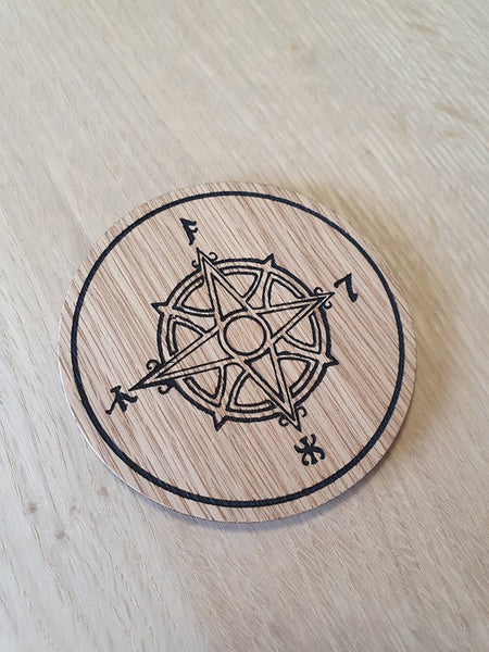 Laser Cut Oak Veneer Coaster: Wonder Compass Design
