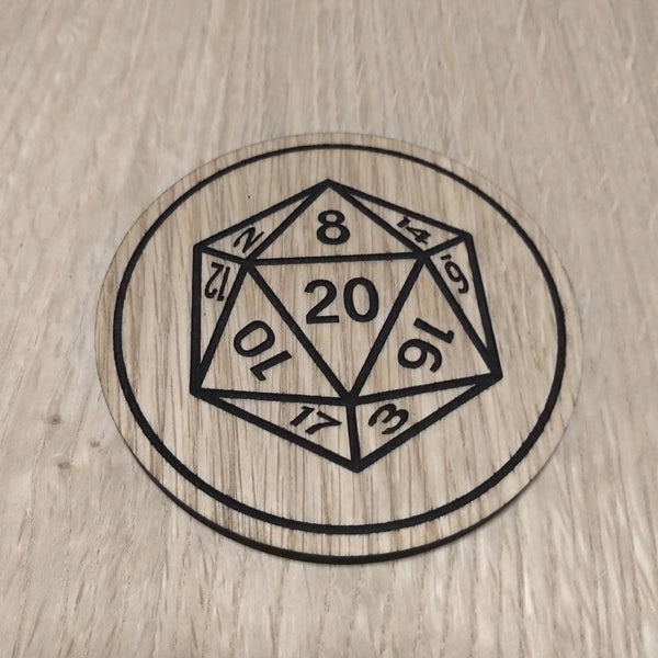 Laser Cut Wooden Coaster: D20 Dice for Dungeon Master