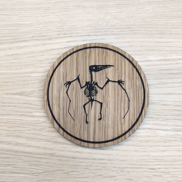 Laser Cut Oak Coaster: Pterodactyl Dinosaur Fossil Design