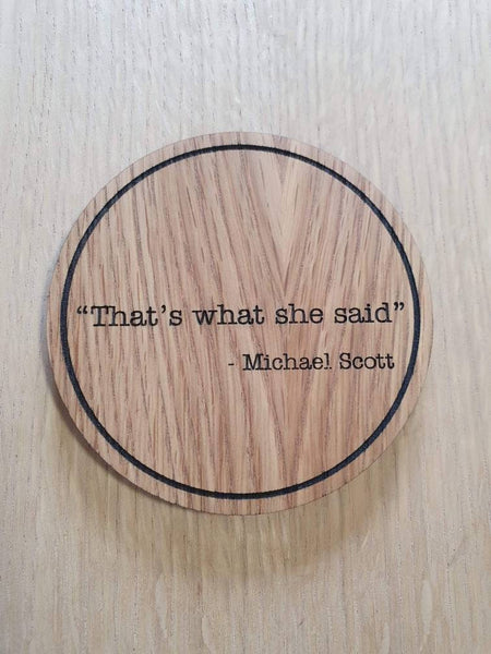 Laser Cut Oak Veneer Coaster: "That's What She Said" Quote
