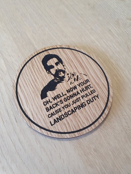 Laser cut wooden coaster. Happy Gilmore movie quote. Landscaping Duty - Unique Gift lasercut