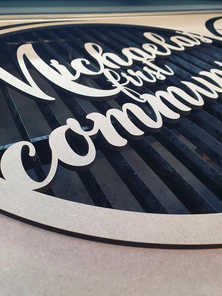 Personalized First Communion Wooden Sign: Lasercut MDF Gift